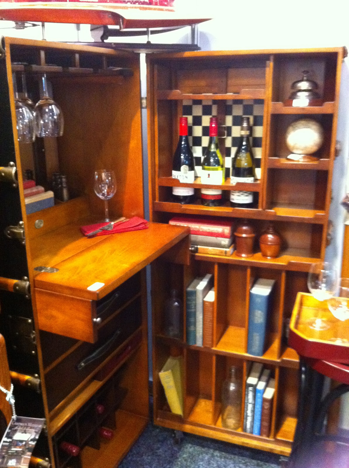 Check out this fabulous modular bar. Made in the style of a turn-of-the century-travel trunk.