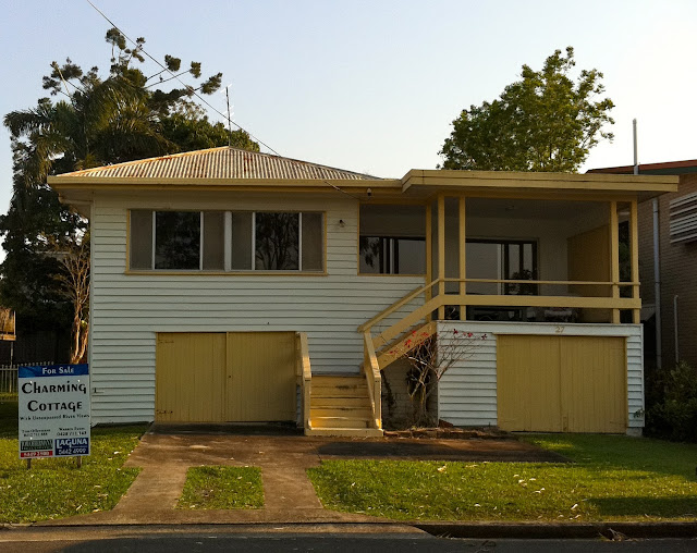 $1.69 million. For a knockdown on a tiny 589 sqm. On a river that floods. Often. And that's a price reduction, the agent informs me. And there's lots of interest. Yeah, yeah.