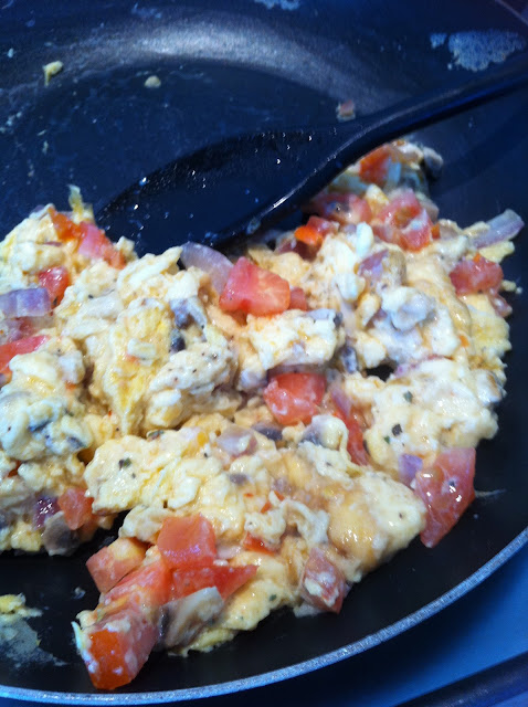 I tried to replicate the 'special scrambled eggs' that Justine cooks for me in her little coffee shop, 'Posto', in Boundary St, West End. I am seriously addicted to them and often only do half a run, 'cause when I run past, I stop to have her 'special scrambled eggs'..... and then have to walk home, full of scrambled eggs and coffee.