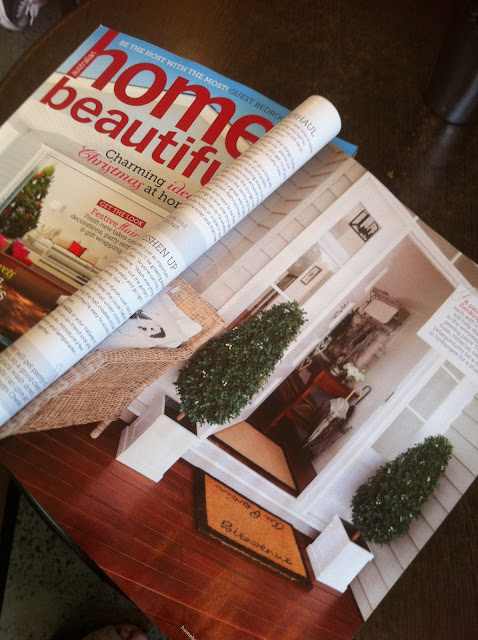 They used the front door for their Christmas article. The glamour continues, long after the house has gone from my life! Feeling warm and fuzzy. I loved that front door (you know my obsession with joinery.... especially windows and transoms). I still have my original 'chicken-scratch' sketches of it when I was scheming the house. I changed my mind like a hundred times. Home Beautiful make it look so nice. Sigh!
