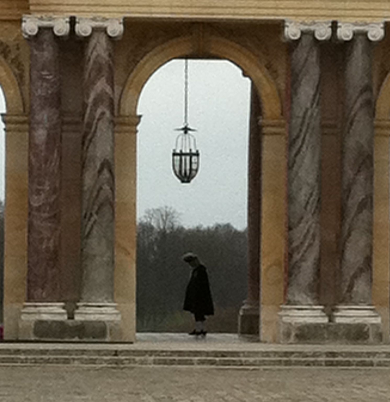 Ok, seeing we're still at the 'Palace of Versailles' this morning, let's head down to stake out the 'Palaces of Trianon' and Marie Antoinette's Estate. I hear they are shooting a movie down there. If I use my zoom on the trusty old iPhone, I might catch an actor in full period costume. There's one!